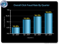 Click Forensics has released some data on click fraud (fake clicks on Internet ads) in the fourth quarter of 2007 and for the full year. According to this data, nearly one out of every three clicks on a Google or Yahoo ad is fraudulent - TechCrunch.