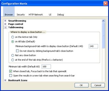 Configuration Mania is a Firefox add-on that organizes and displays many of the options which are normally only available through about:config. Here are just a few things you can manipulate with Configuration Mania.